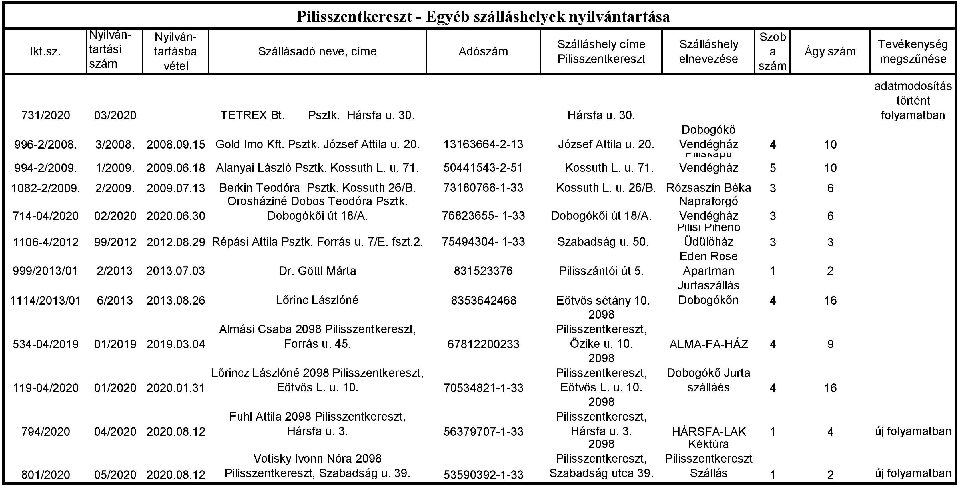 Egyéb szálláshelyek nyilvántartása